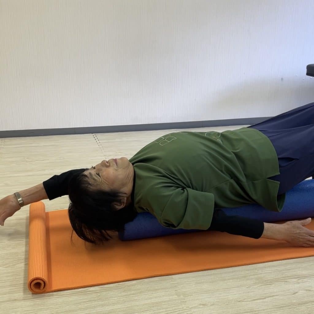 ・胸を開き、背中の丸まりを防ぐストレッチポールを使ったストレッチ