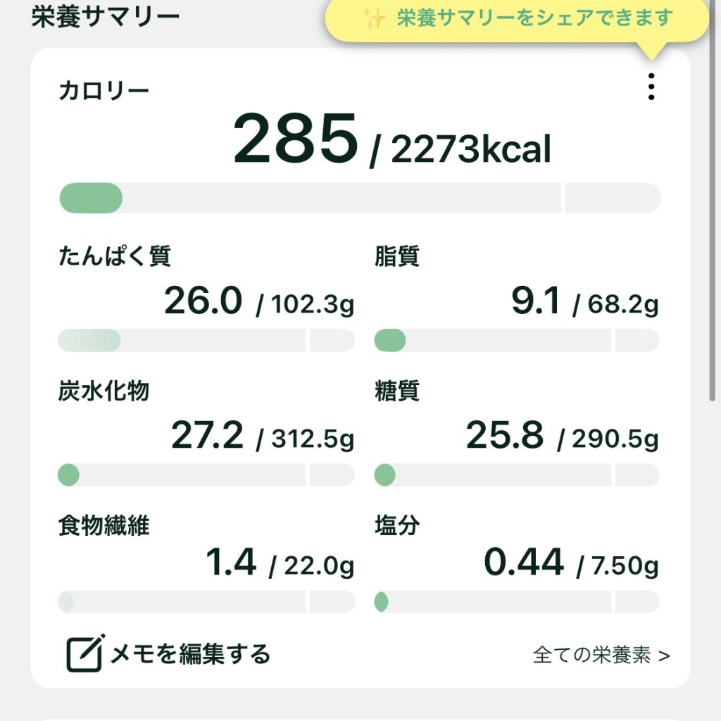 この設定した数値を朝・昼・晩・間食の4~5分割に分けて食べました設定が完了したら、アスケンやカロミルなどのカロリーアプリで実際に記録しながら試してみます